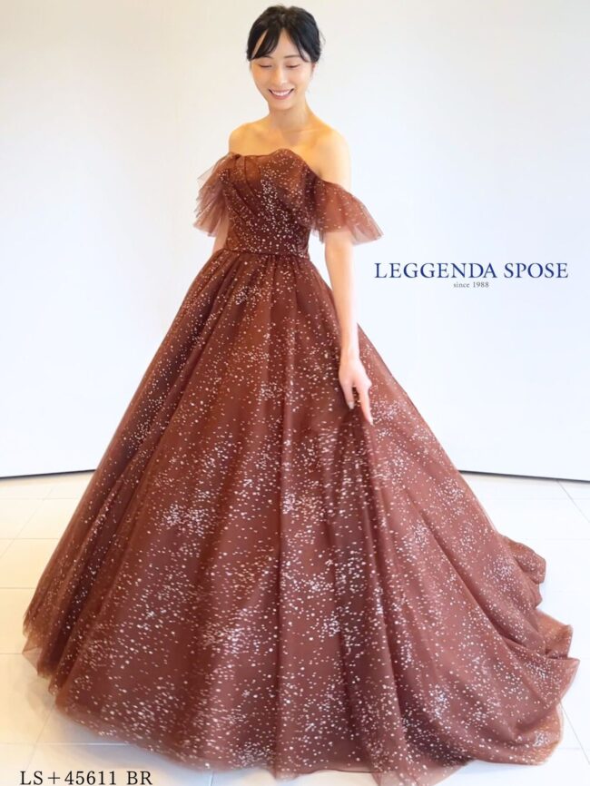 ANT0367(アイボリー/オレンジ) | ジュエルパールグリッターの輝きを全身にまとい、上品さと可憐さをあわせ持つ“現代のプリンセス”を表現。新素材“エアーファブリックオーガン”が、ふんわりと空気を含んだような軽やかなドレープを描きます。ピーチオレンジのやさしい色合いが肌にやわらかく映え、見る人にぬくもりと幸せを届けるような一着です。