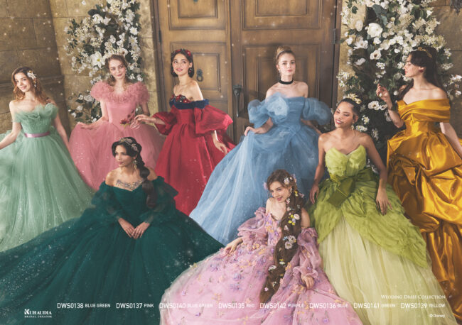 ディズニー プリンセスをイメージしてデザインしたドレスに注目。それぞれのキャラクターを象徴する色やモチーフをさりげなくあしらって、”気づき”の感動がえられます。